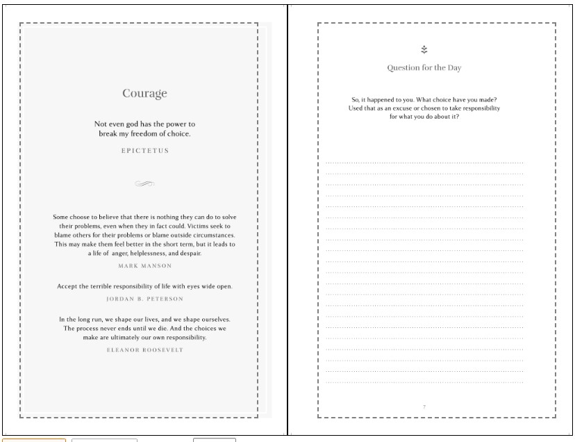 “My first introduction to Stoicism…. The book has a lot of thought-provoking maxims that help you grow towards becoming the person you aspire to be. The question of the day (author approach) helps me deal with adversity, toughen-up, and accept things outside our my control.”